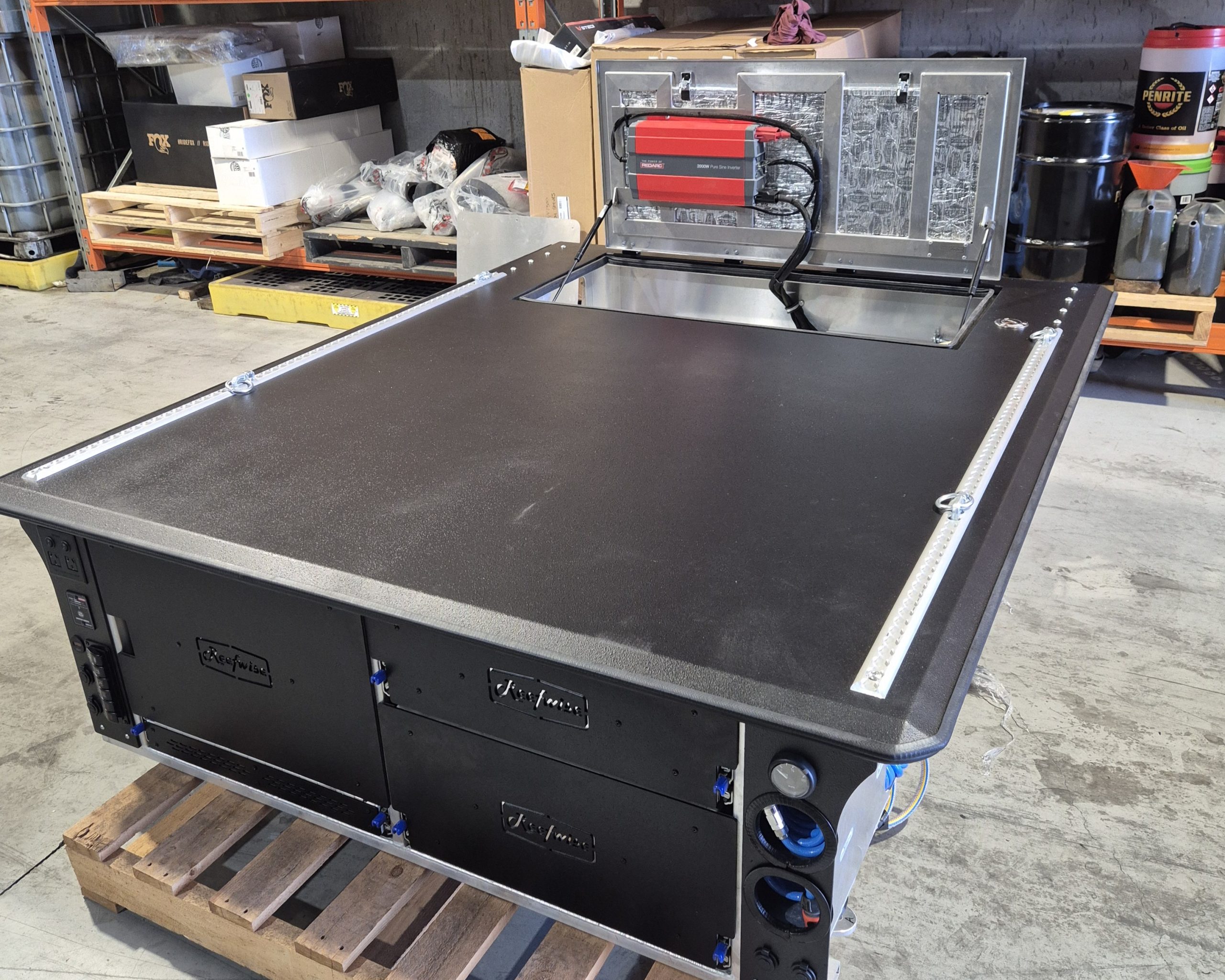 This Deluxe build gives the owner a complete system for travel, work, and weekends away, with everything protected inside the factory tub. The aluminium lid provides serious load-carrying ability, while the internal layout keeps gear organised, accessible, and ready to use.
